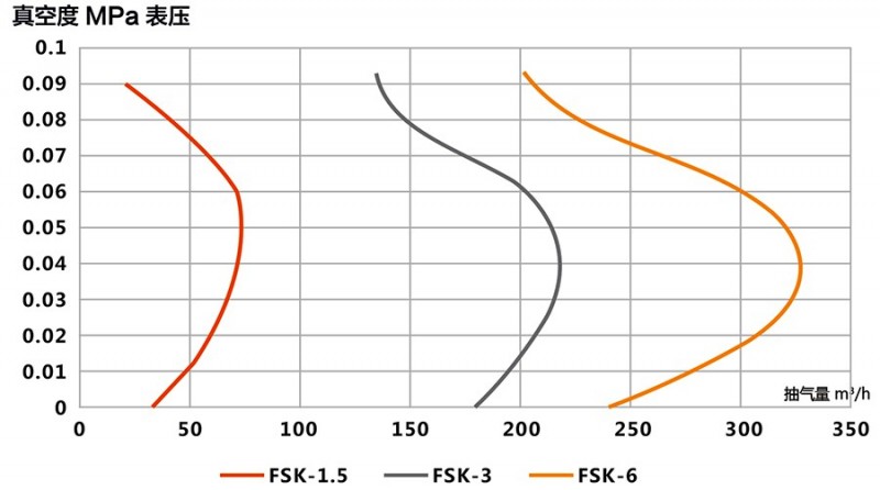 適應于90~360m3/h的低抽氣量區(qū)間,極限真空度較低,可增加電機功率作為壓縮機使用。